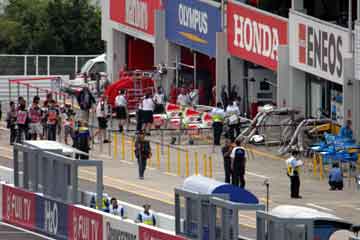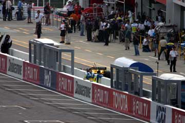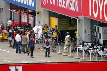 | ジョーダンのピット、山本左近を狙う報道陣達です。 10:45 | BARのピットにも多くの人が集まっています。 |