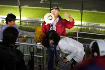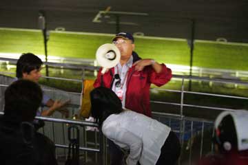 | そして最後は恒例の大ジャンケン大会。 | 祭りが終って、人気の無いサーキットを帰る集団。 |