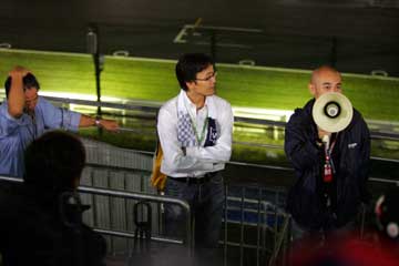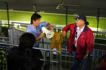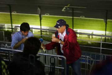 | 津○さんは登場早々ビールを要求、ファンが届けると先ず一杯。 (^^;; | |
