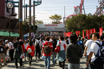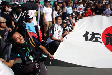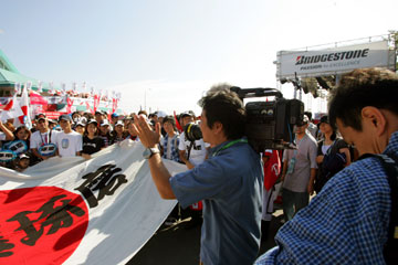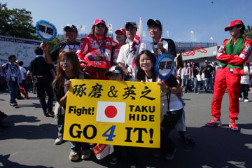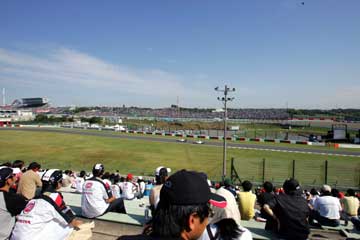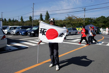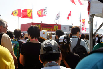 タルイさんのイラスト展会場は朝からプチオフ会状態で賑わっている、一旦立ち寄り皆さんに挨拶した後自分の指定席に向け一足早く出発する、殆んどの人が琢磨応援席だが私はF2指定席で遠いのだ・・・。 しかし、グランド・スタンド裏で再び道草。 (^^; |