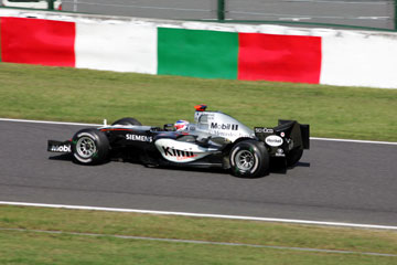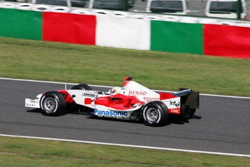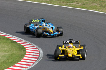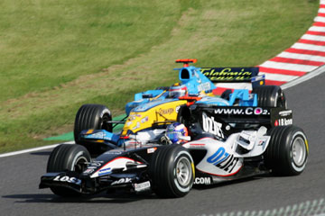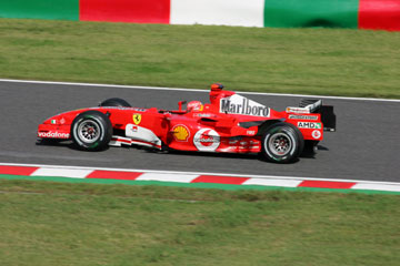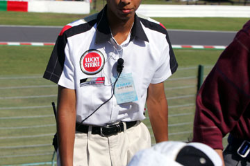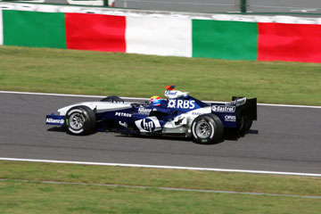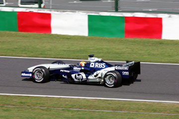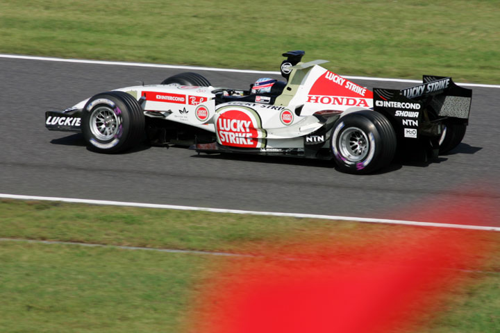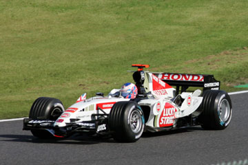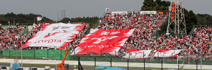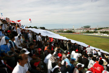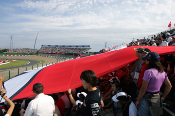 全てのマシンがグリッドに向い終わる、すると今度は観戦しているF指定席で動きが始まる。 先程のスタッフの主導でBARの大応援旗が出現したのだ。 |