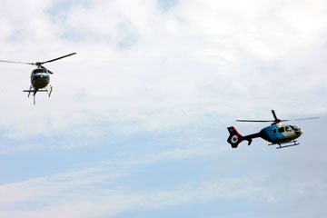 | 取材のヘリが大空を舞う。 あんまり接近して事故を起こすなよ!。 | |