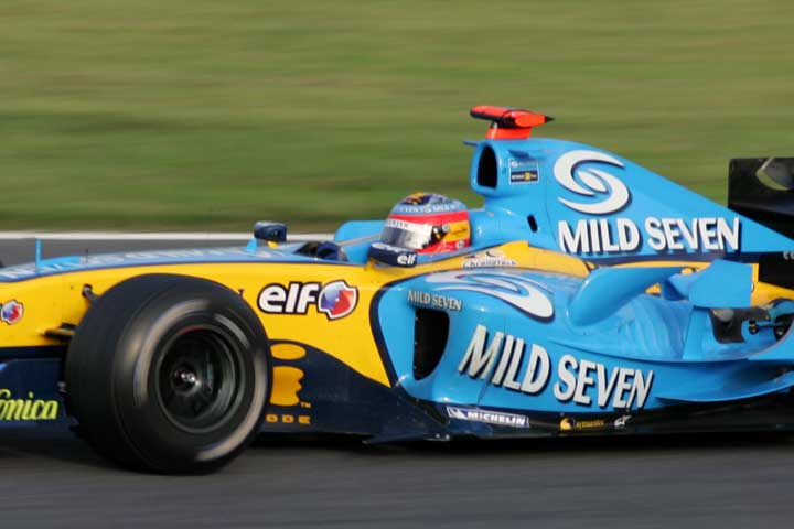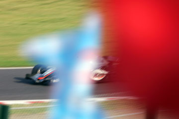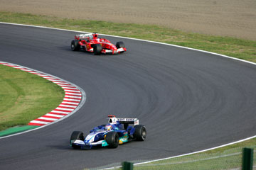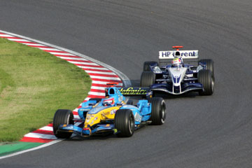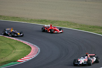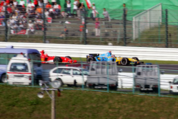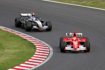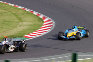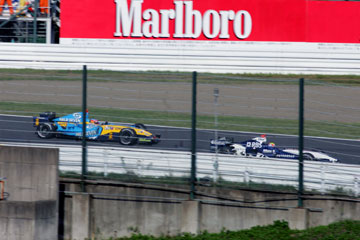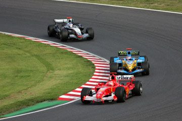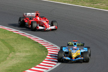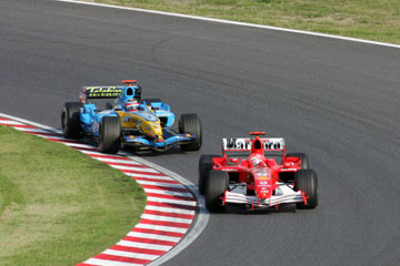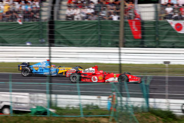 | 20周目アロンソは130Rで豪快にミハエルをオーバーテイクしたが。 | |